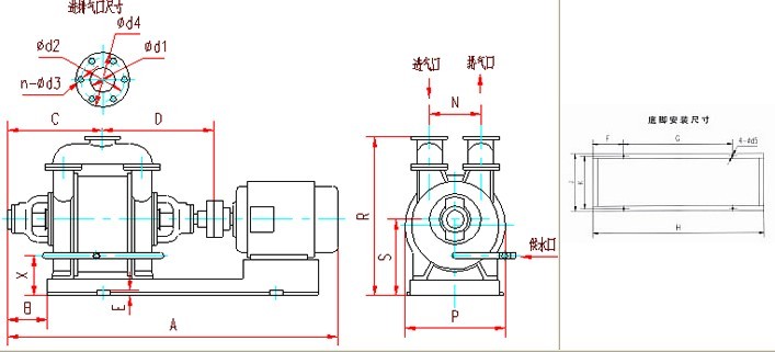 SK型水環式真空泵或壓縮機進氣口前應加裝過濾網,以防顆粒物體進入泵內。