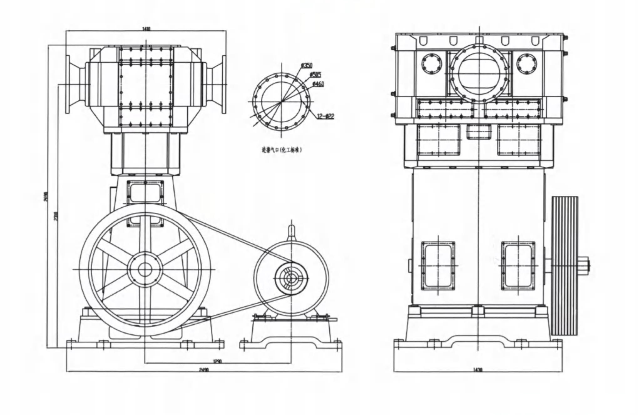 氣缸來用雙缸結構,平行布置,整機運行振動小,抽氣過程連續,脈沖小。