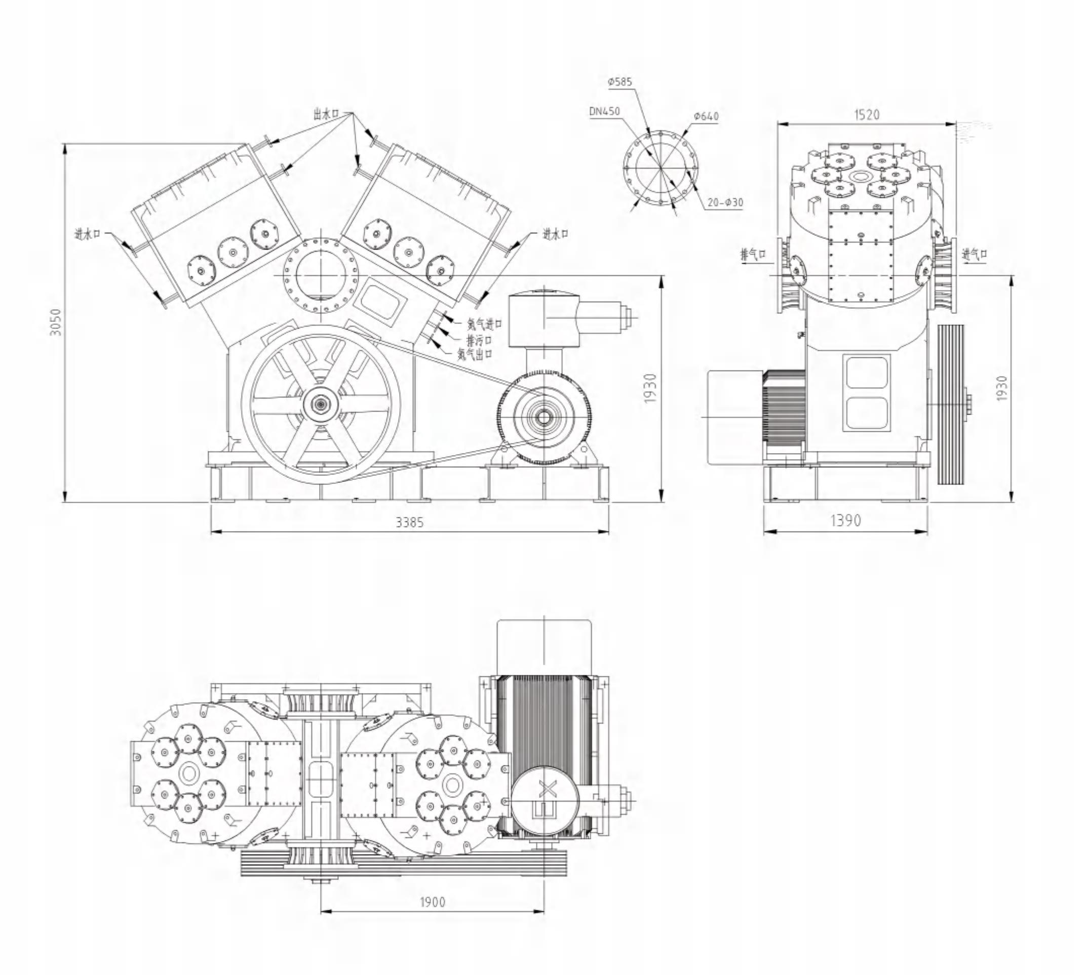 2、進、排氣閥設置在氣缸蓋上部和氣缸圓周面上,方便檢測與維修。
