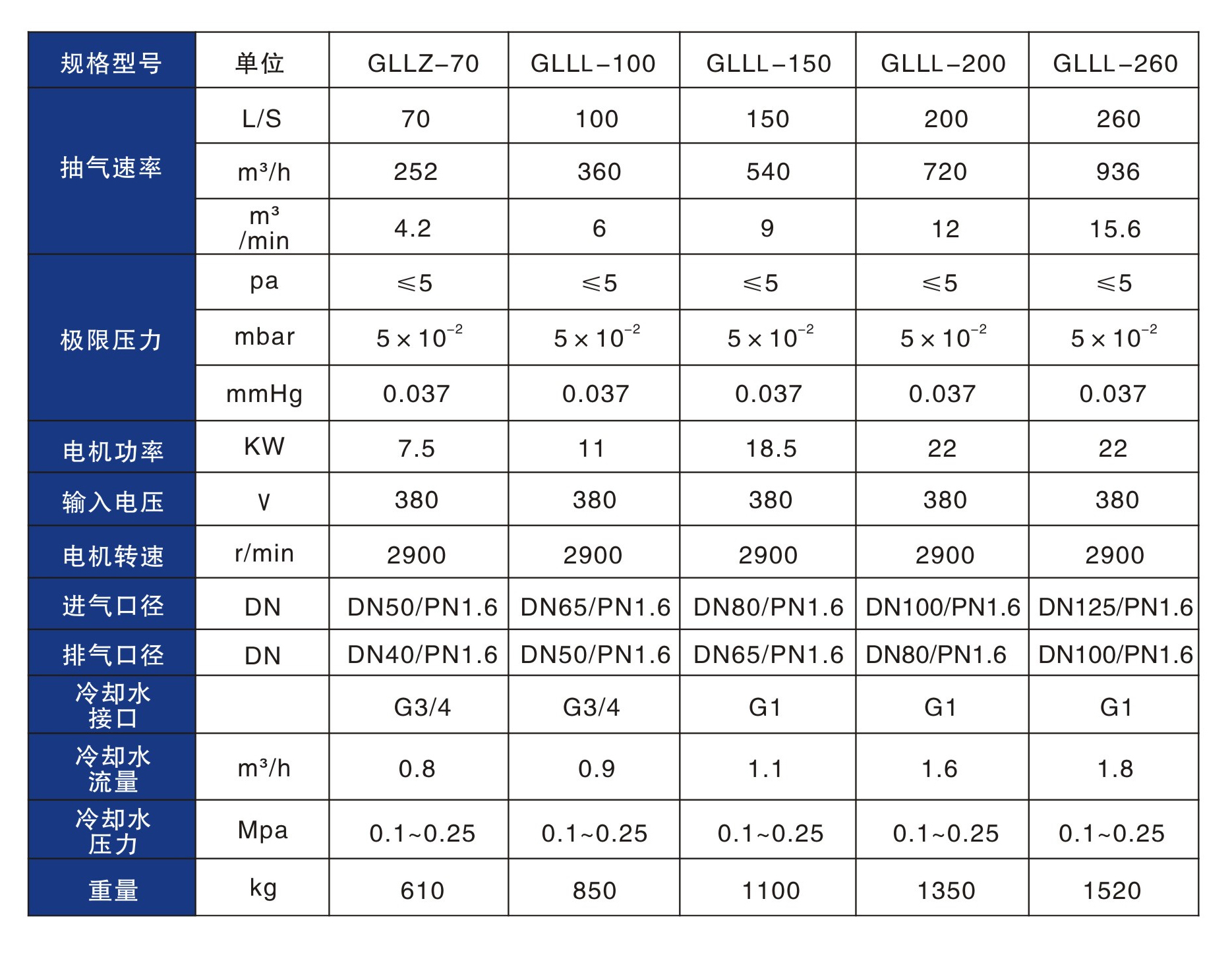 立式GLLLGLLZ螺桿真空泵技術參數: