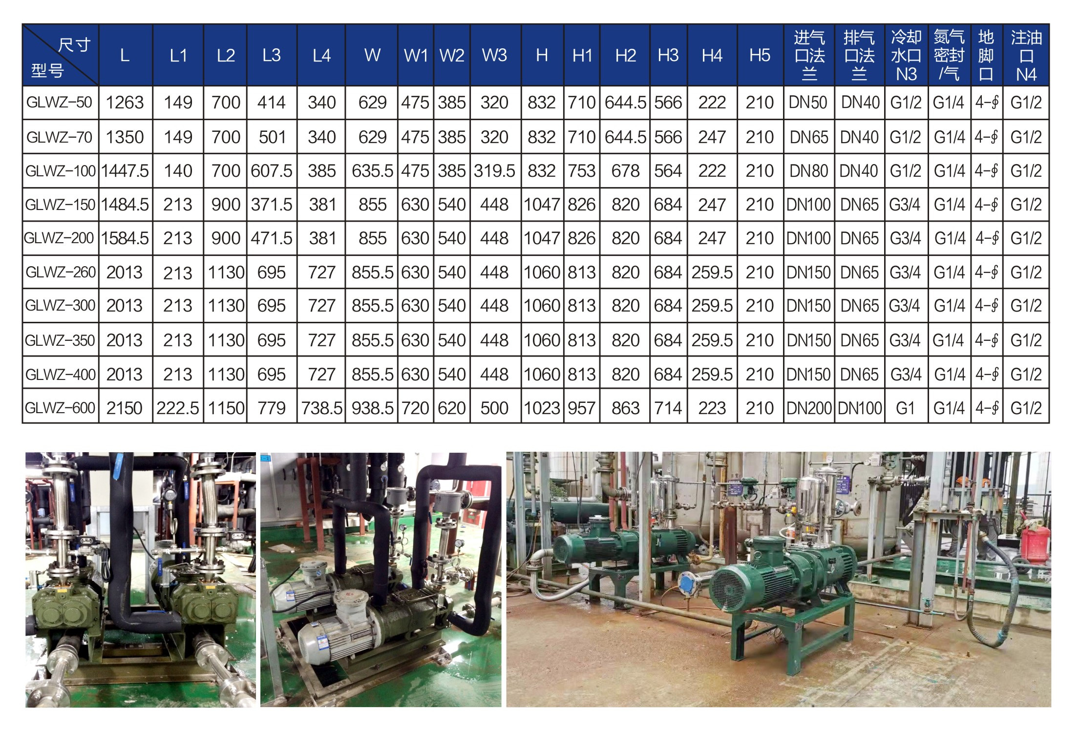 臥式系列GLWZ螺桿真空泵適用于小于等于30OL/S抽速,極限真空大于5Pa的真空獲得環境,廣泛應用于石油化工、制藥、食品、醫藥中間體、精細化工、農藥、光伏電子、環境保護等行業的各種工藝。本系列真空泵能抽出空氣、二氯甲烷、正己烷、環己烷、丙酮、四氫味喃、苯、甲苯、汽油、氫氣、硅烷、氨氣等氣體介質。